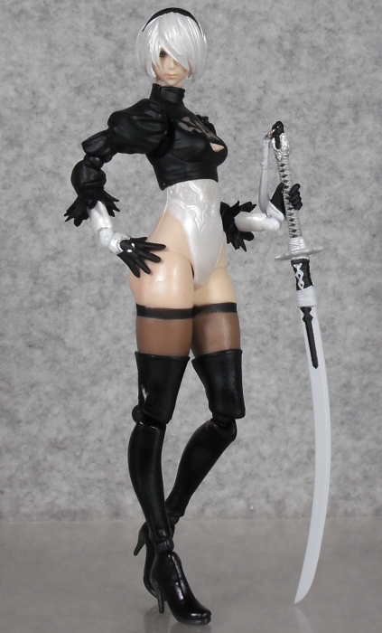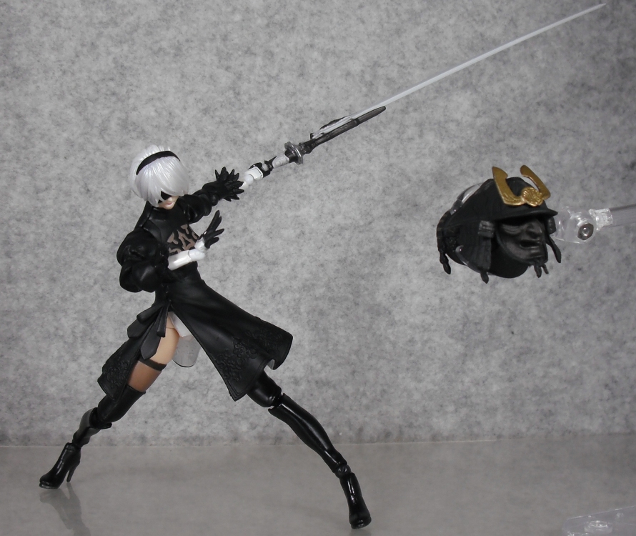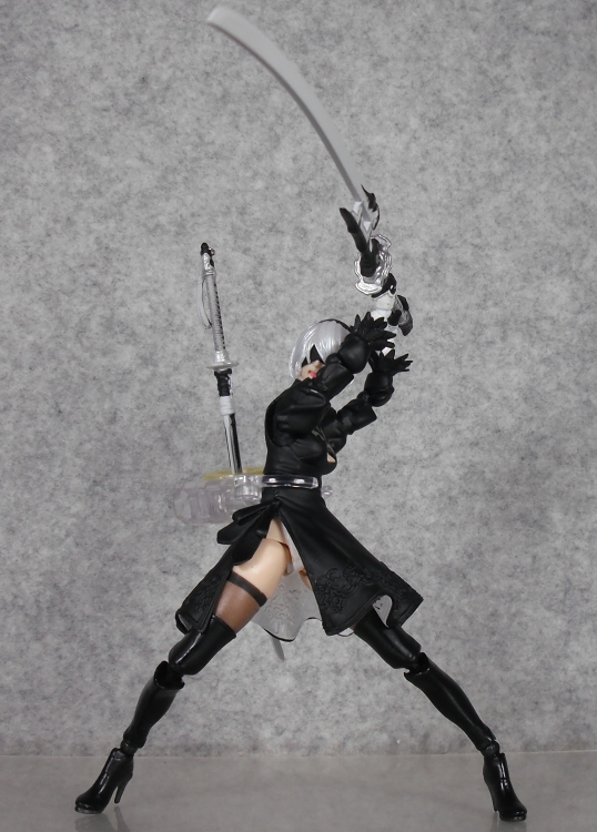 付属品はゲーム内の4系統の武器が全て付属し、ポッドや自爆時の服装など劇中の様々なシチュエーションの再現ができ、かなり満足度が高い。