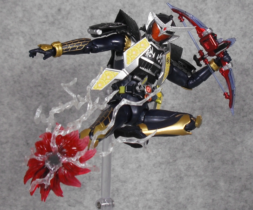 アーマーの違いで若干の動かしやすさ・動かしにくさは変わっているものの、概ね鎧武としての可動域は変わっていないですね。