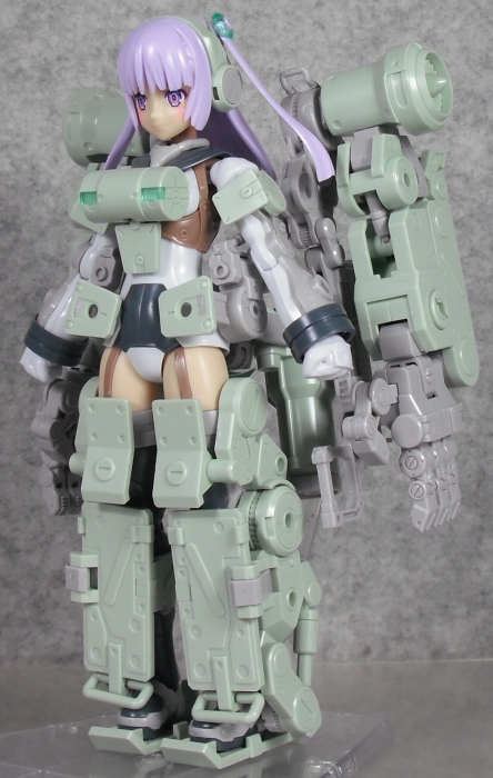 肩から後ろに90度回転し、素体の肩アーマーを取り付け、グリップを展開。