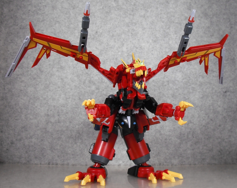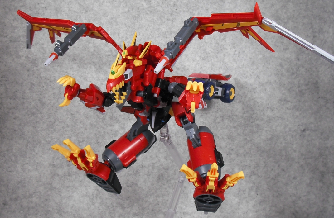 肩を前に上げると翼とゴリゴリ干渉するのと、股関節ボールジョイントというモデロイドの悪癖が難点。