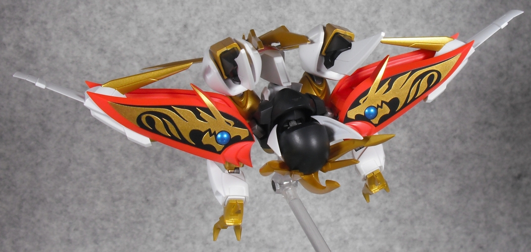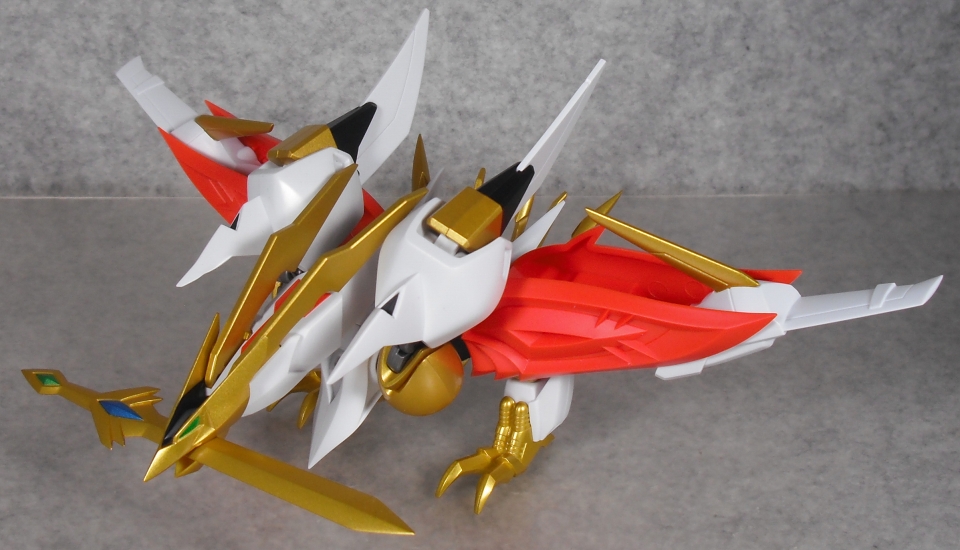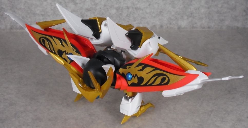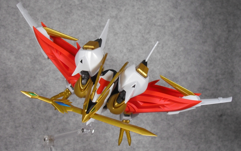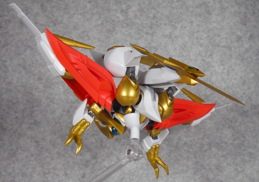 肩の根元の保持力が弱いせいで、この形態で浮かせると翼がダランとしてしまう欠点が。