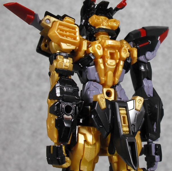 この時点でミラージュコロイド・ステルスの機能を得たことにより、装甲色が黒へと変化する。