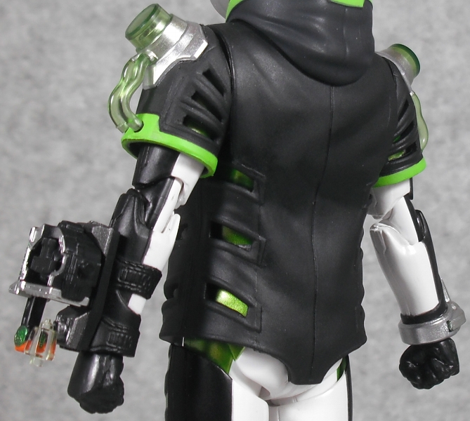左腕のメガウルオウダーは造形・塗装ともに良いのですが、中に収まっている眼魂が真っ黒なのが残念。