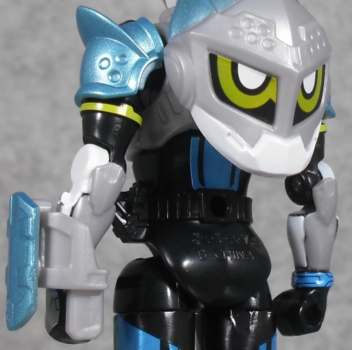 頭部の青と白、腹部と腿の青、肩アーマーの青、前腕の白、バックル、足の白が塗装済み。