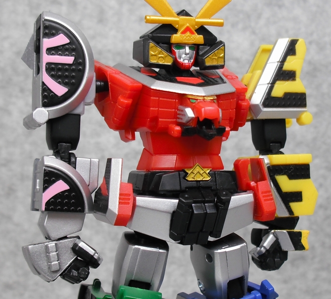 獅子折神、龍折神、亀折神、熊折神、猿折神の5体が「合」のモヂカラで侍合体した姿。